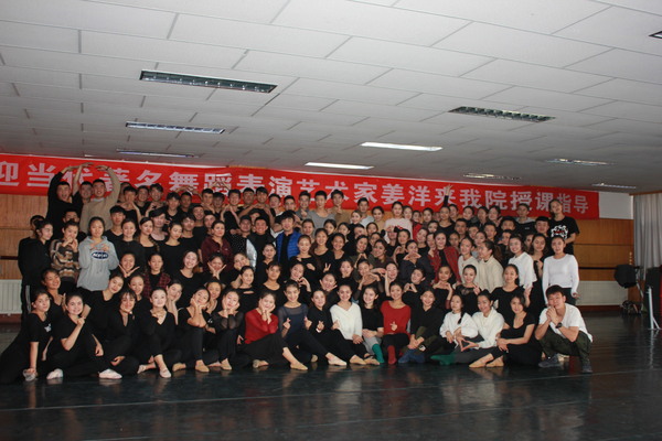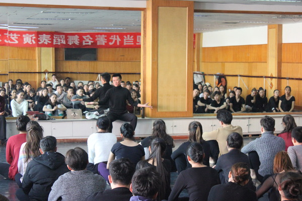 最后一天,姜洋老师还从自身的求学经历和在海外舞团担当首席的舞蹈经验,给舞蹈系的学生们上了一堂生动的专业励志的课程,同学们在舞蹈系教室席地而坐,近2个小时的讲座时间里,同学们被姜洋老师小时候艰苦的学习条件和在北京艰难的求学经历所感动,也为姜洋如今乐观、热情的性格所感染,更为其不断挑战自身发展可能性、不断努力、持续在艺术道路上的求索所感佩。排练厅时常爆发出热烈掌声和会心的笑声,还有内心因受触动的唏嘘声。在听到姜洋在一年的时间里就成为法国国家歌剧院里昂芭蕾舞团首席的时候,并且又在一年的时间获得法国里昂第二大学人文社会科学硕士学位时,同学们发出阵阵掌声和尖叫声。姜洋老师最后鼓励同学们:“你们要相信自己,我们每一个人都是一个可能的宝藏,要相信付出就有回报,要敢于走出去、要敢于挑战自己,当然最重要的是要懂得努力、而且是用头脑的努力与坚持,那样我们一定能成为最好的自己。”