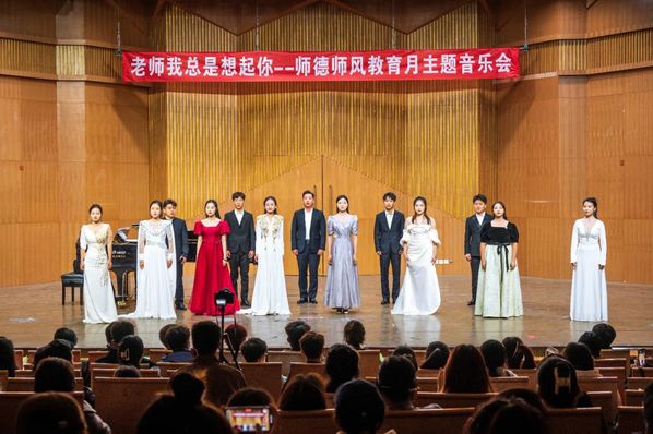 为深入学习贯彻习近平新时代中国特色社会主义思想和党的二十大精神,落实教育部“师德师风建设工作推进暨师德集中学习教育”启动部署会精神,持续加强教职工职业道德建设、提高教书育人水平,营造尊师重教的浓郁氛围,10月17日晚,我校在昆仑校区音乐厅举办“老师我总是想起你——师德师风教育月”主题音乐会。