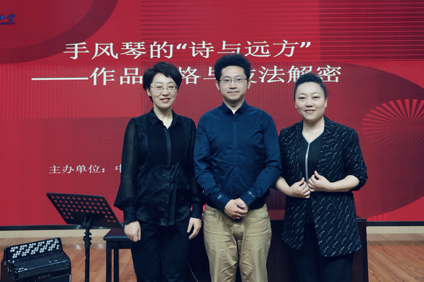正声厅作题为《手风琴的诗与远方——作品风格与技法解密》学术讲座。许笑男副教授深入剖析了手风琴演奏的技法,包括触键、抖腕、抖风箱、刮奏以及风箱设计等,细致讲解了巴洛克、洛可可时期的复调作品以及中外不同音乐的经典曲目。讲座结束后,与会师生进行了深入而热烈的讨论,参会师生表示收获颇丰。
