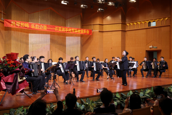 5月10日20:00,“风琴和鸣,乐韵边疆”许笑男手风琴独奏音乐会在昆仑校区音乐厅成功举办,近500名热情的观众前来现场观看。这场音乐会犹如一部跨越时空的宏伟乐章,作品沿着时间的线索,从巴洛克主义时期延伸开来。其中不仅有中国经典曲目《翻身的日子》、《打虎上山》等具有时代印记的作品,还有来自俄罗斯、阿根廷、西班牙等不同国度风格各异的佳作,更有许笑男的原创作品闪耀其间。