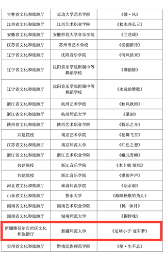 舞蹈系李峰老师、阿依努尔老师编创的原创舞蹈《足球小子·冠军梦》在第十三届“桃李杯”全国⻘少年舞蹈教育教学成果展示活动脱颖而出。该舞蹈讲述了足球是每一个新疆男孩最热爱的一项体育运动,在新疆无数逐梦的少年对足球的热爱是那么纯粹。随着越来越多的新疆运动员入选国家队,他们期待有一天可也以实现自己的足球梦。作品以一群新疆孩子踢球为主线,通过维吾尔族舞蹈元素,表现新疆孩子们在踢球时的快乐、单纯、团结,以及为追逐梦想,执着前行,永不后退的精神品质。
