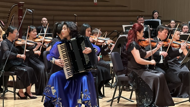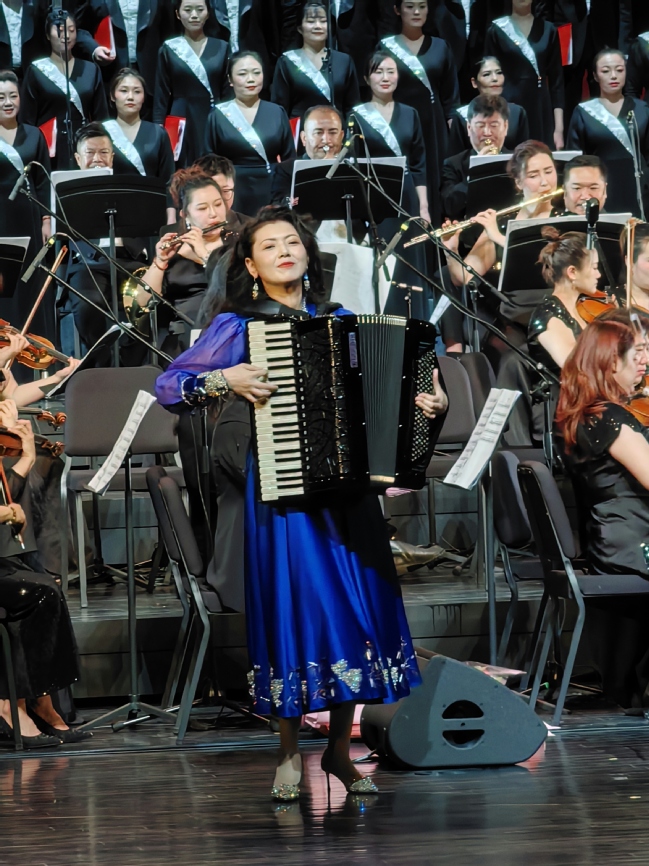 手风琴教师、硕士生导师嘉依娜·热合木霍加副教授受邀参与此次盛大的开幕演出。4月26日和27日,她分别在乌鲁木齐文化中心大剧院和乌鲁木齐文化中心音乐厅,以精湛的技艺与新疆爱乐乐团合作共同为观众演绎了手风琴乐曲《吉尔拉舞曲》。
