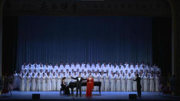 演出中,天山百灵合唱团深情演绎了《祖国赞》《领航》《在灿烂阳光下》《黄河大合唱》等经典歌曲。做爱动漫