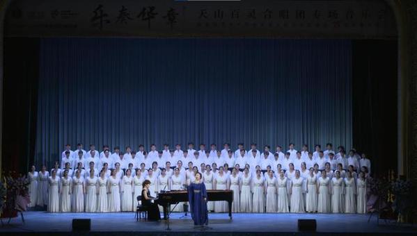 庆祝中华人民共和国成立七十五周年系列演出——“乐奏华章”天山百灵合唱团专场音乐会在新疆人民剧场奏响。