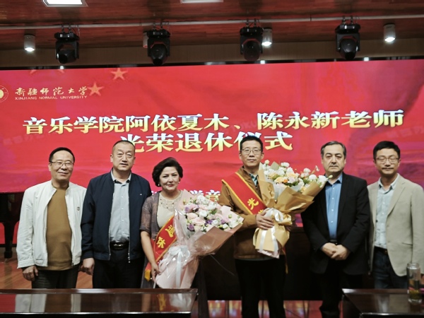 在正声厅举办退休仪式,为退休教师阿依夏木古力•吐尔逊、陈永新送上职业生涯中的圆满仪式感。学院在家领导出席仪式,全体教职工参加仪式,仪式由工会主席马生福主持。