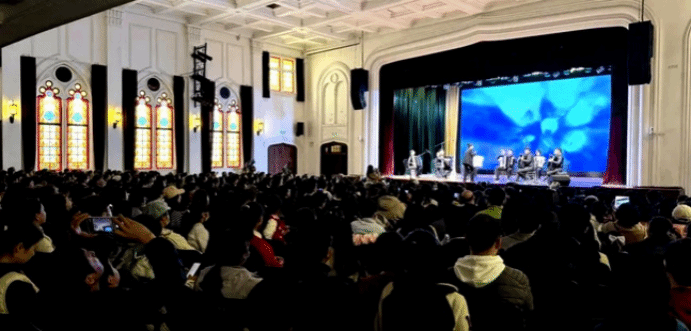 “天山神韵”手风琴乐团在上海市第三女子中学百年建筑“景莲堂”演出现场