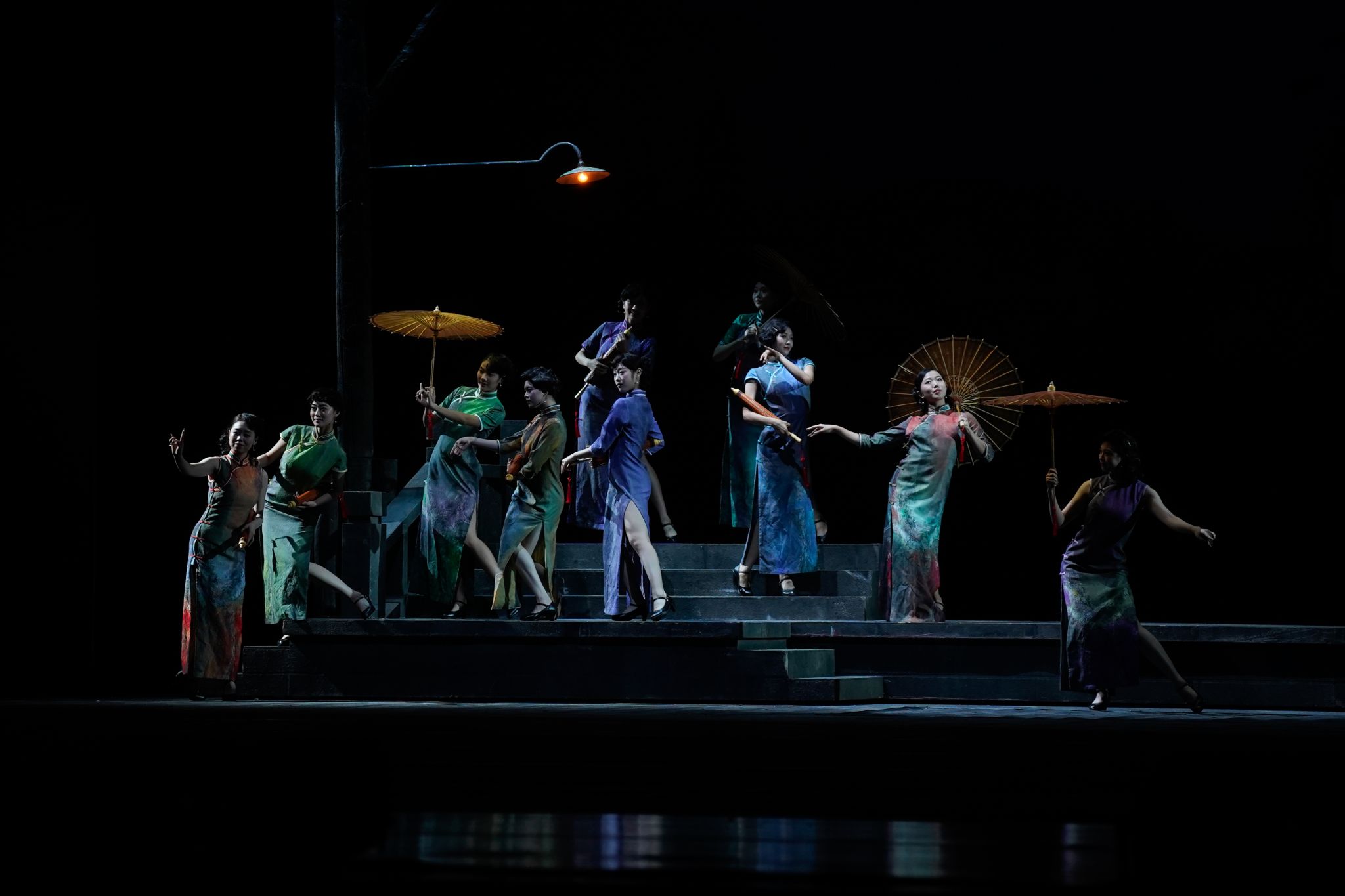 青年交响乐团在指挥的精准调度下,奏响雄浑磅礴的乐章,为剧情铺展烘托出恰到好处的氛围;我校天山百灵合唱团清晰传递出演出的语言背景,让剧情表达更显丰盈;我校舞蹈团与戏剧演员亦亮点频现,他们活力迸发、激情洋溢的演绎,为这部浸润着江南韵味的歌剧注入了西北边疆的独特风情,使得整部作品在地域文化的碰撞与交融中绽放出别具一格的光彩。