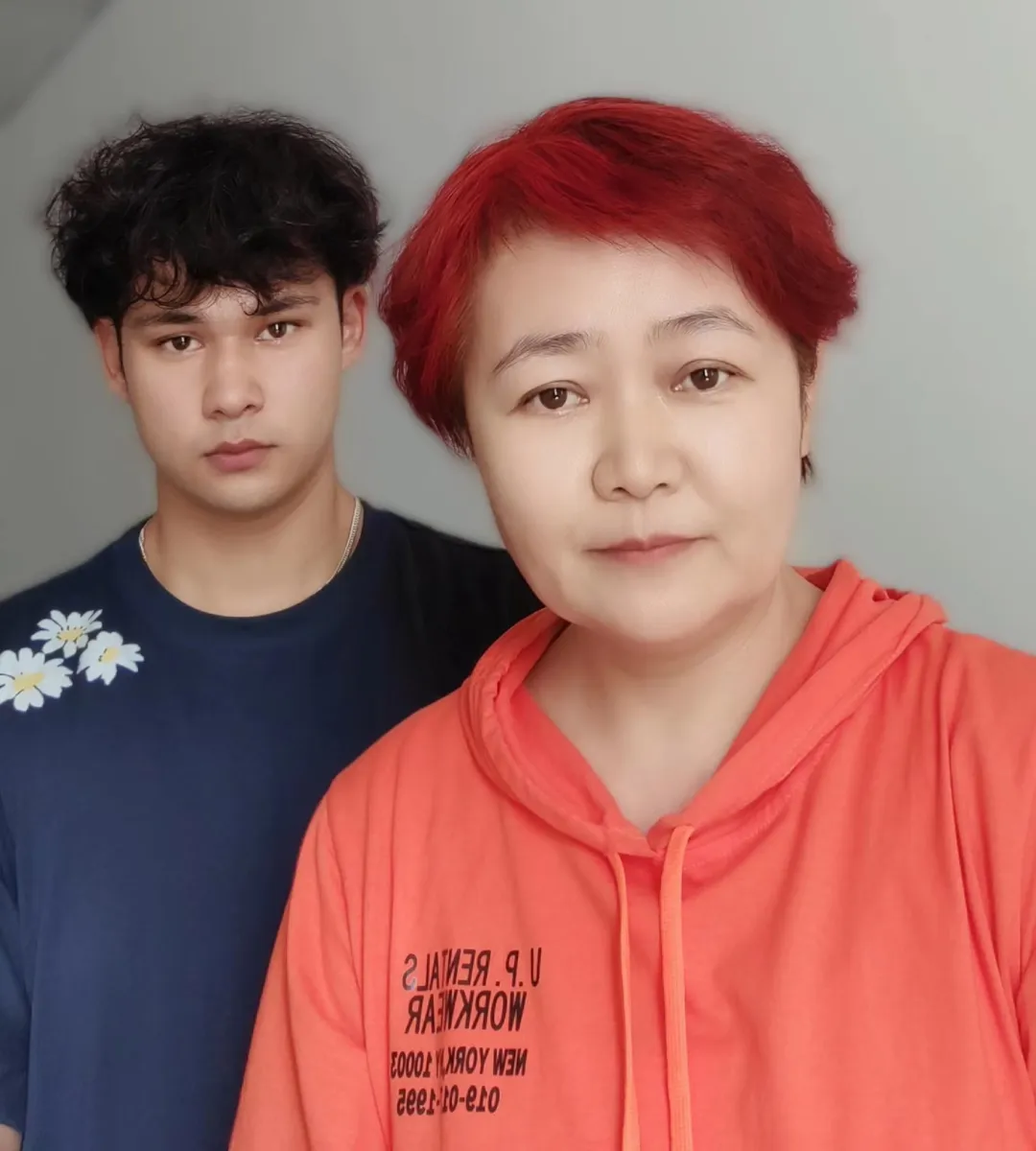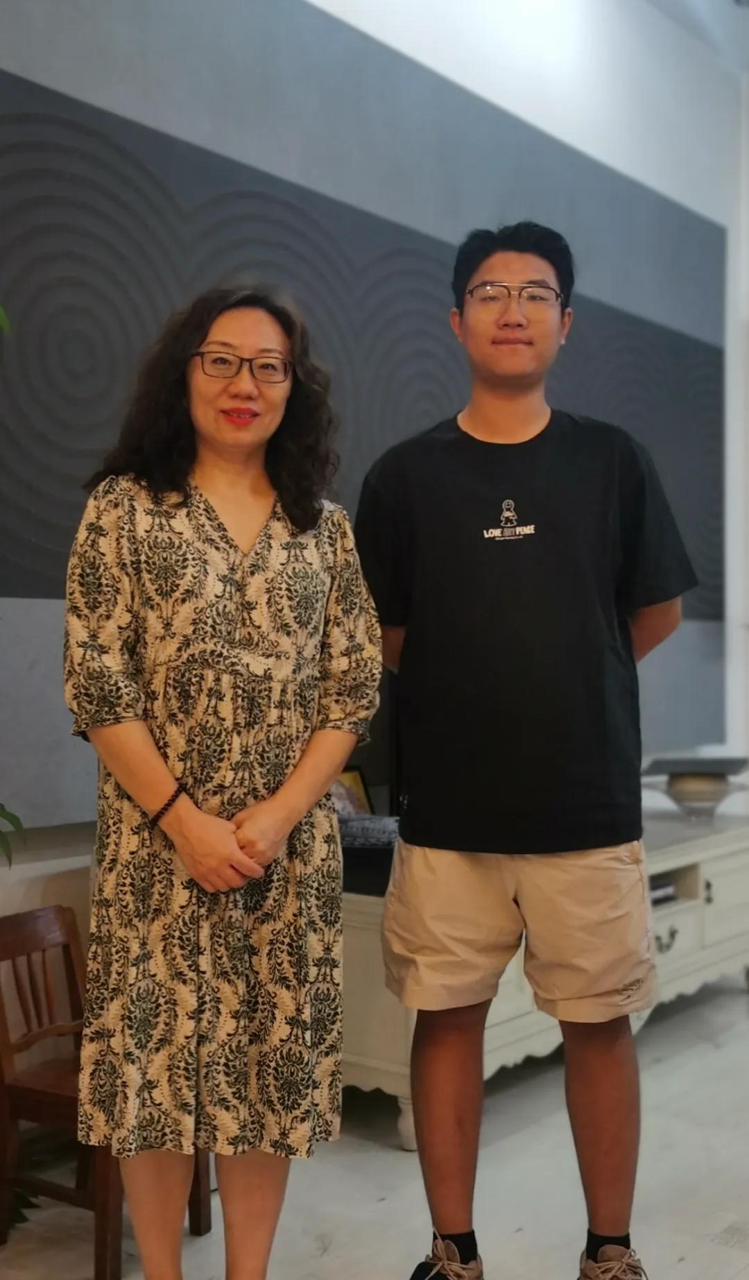 梁秋丽老师和23-5班郑梓墨、玛力青