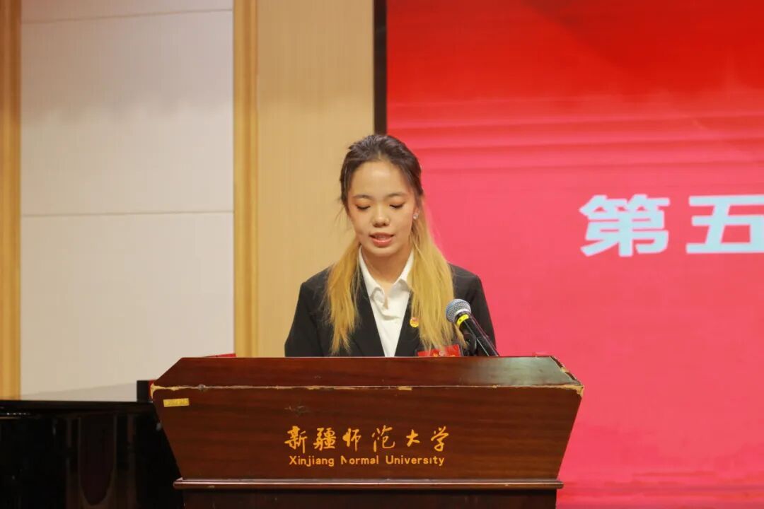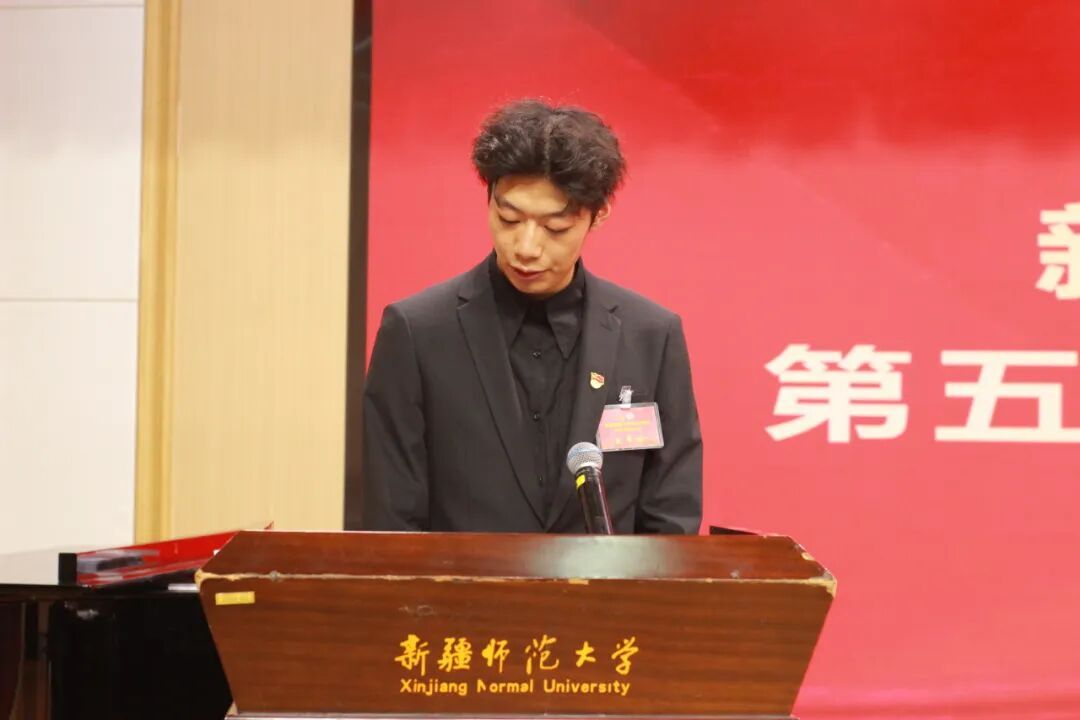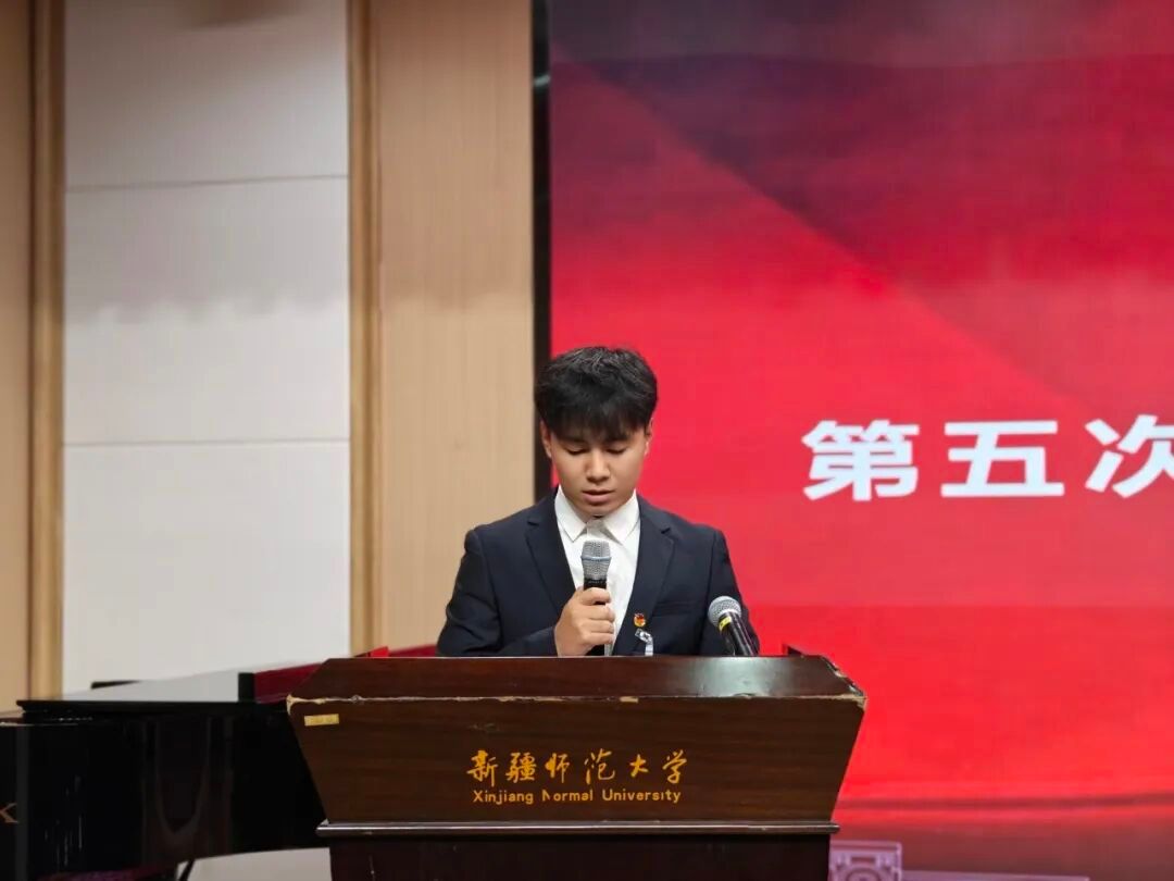 校学生会主席团成员努尔木哈买提·叶尔生宣读会议召开批复