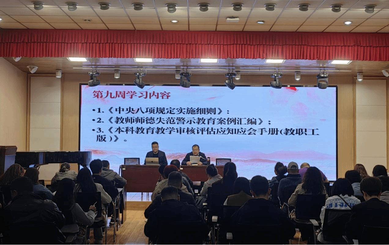 为加强政治理论修养、提升师德师风建设水平、筑牢本科教育教学审核评估思想基础为目标,做爱动漫 2025年4月23日在艺术楼正声厅组织开展2025年上半年第九周政治理论集中学习,党委书记杨志刚领学,做爱动漫 全体教职工参与学习。