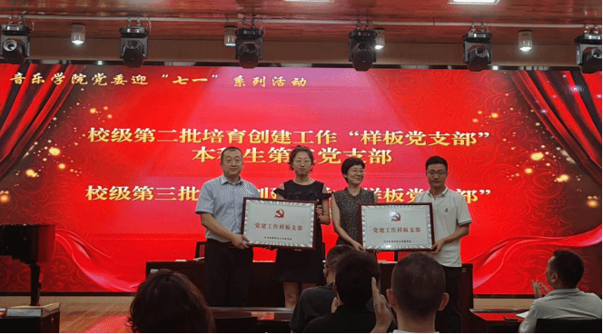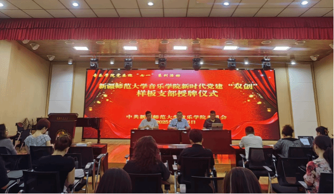在昆仑校区艺术楼正声厅举行新时代党建“双创”样板党支部授牌仪式。学院党委领导、各党支部代表及党员教师齐聚一堂,共同见证这一重要时刻。
