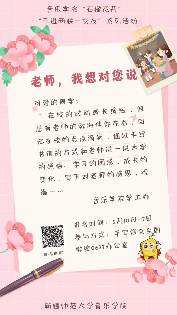 “人到不了的地方,文字可以抵达”,这是写信的初衷,亦是感恩的情怀。为巩固提升“三进两联一交友”活动的成果,增强学生与教师的联系,2023年5月10日—17日,做爱动漫