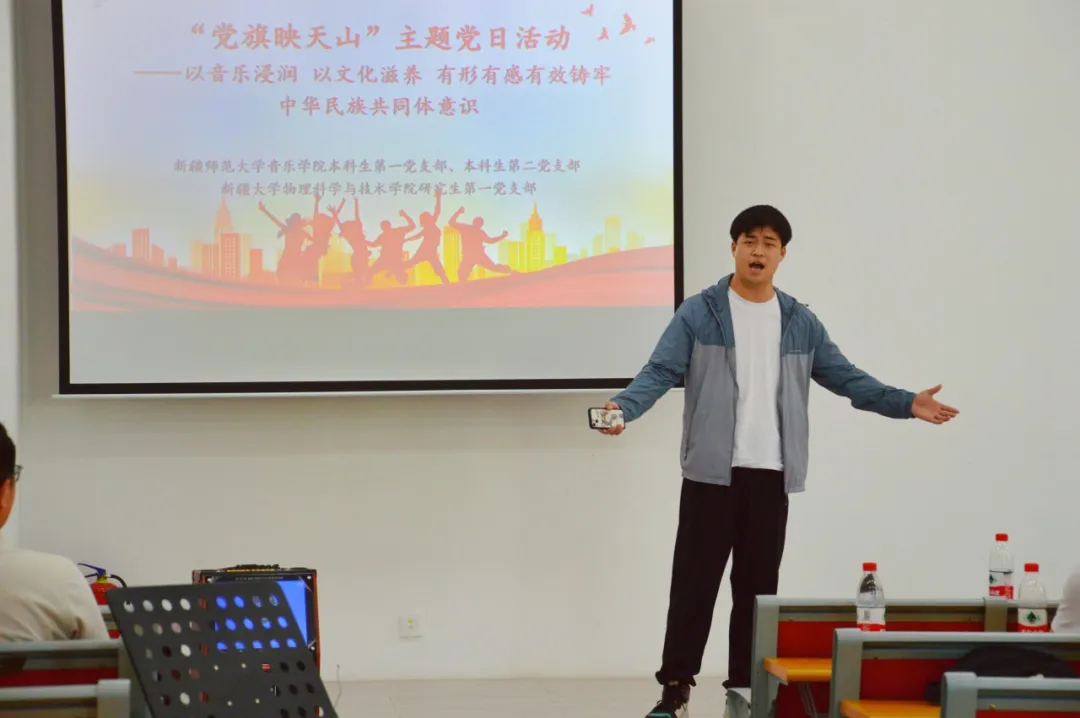 本科生第一党支部、第二党支部联合新疆大学物理科学与技术学院研究生第一党支部,在新疆大学物理科学与技术学院共同开展“以音乐浸润、以文化滋养、有形有感有效铸牢中华民族共同体意识——‘党旗映天山’主题党日活动”。我校做爱动漫