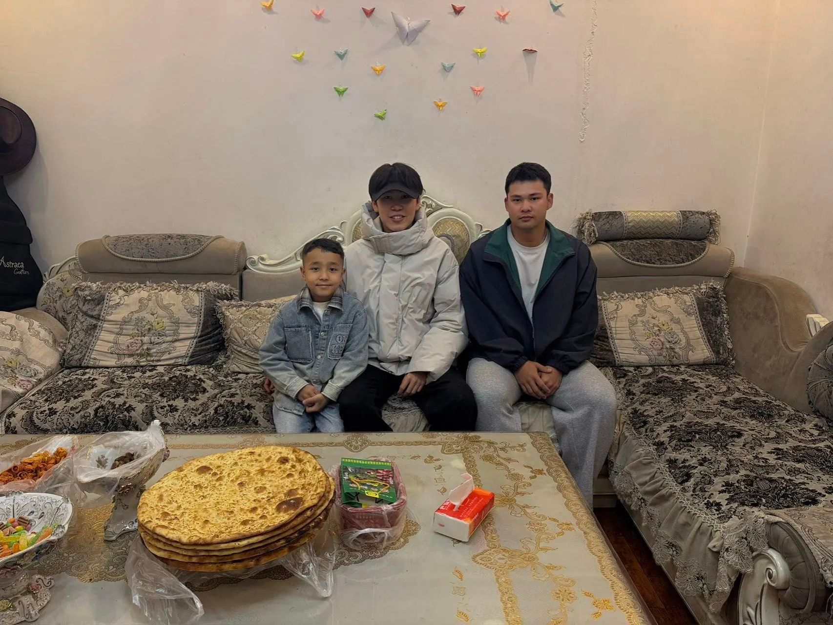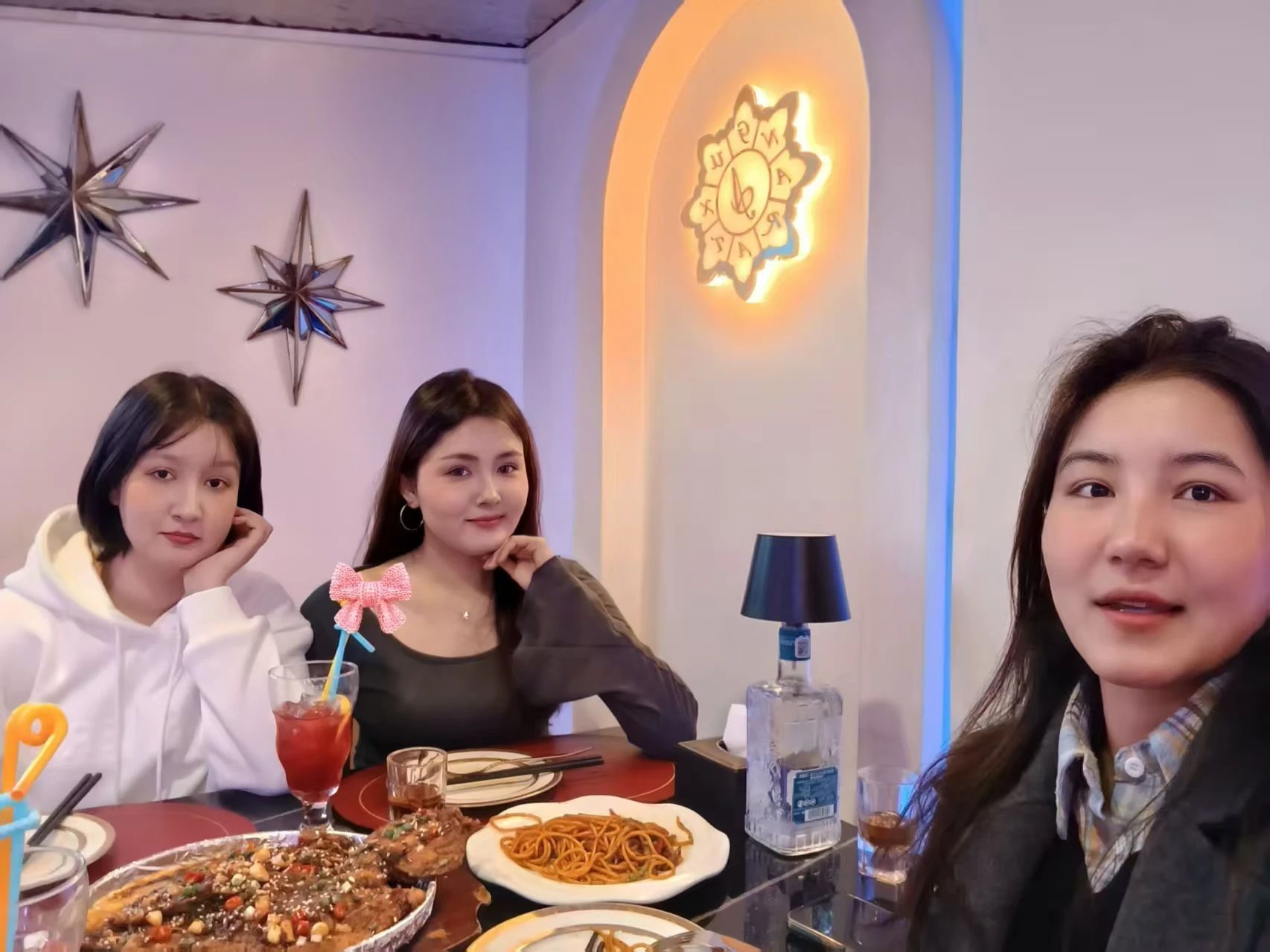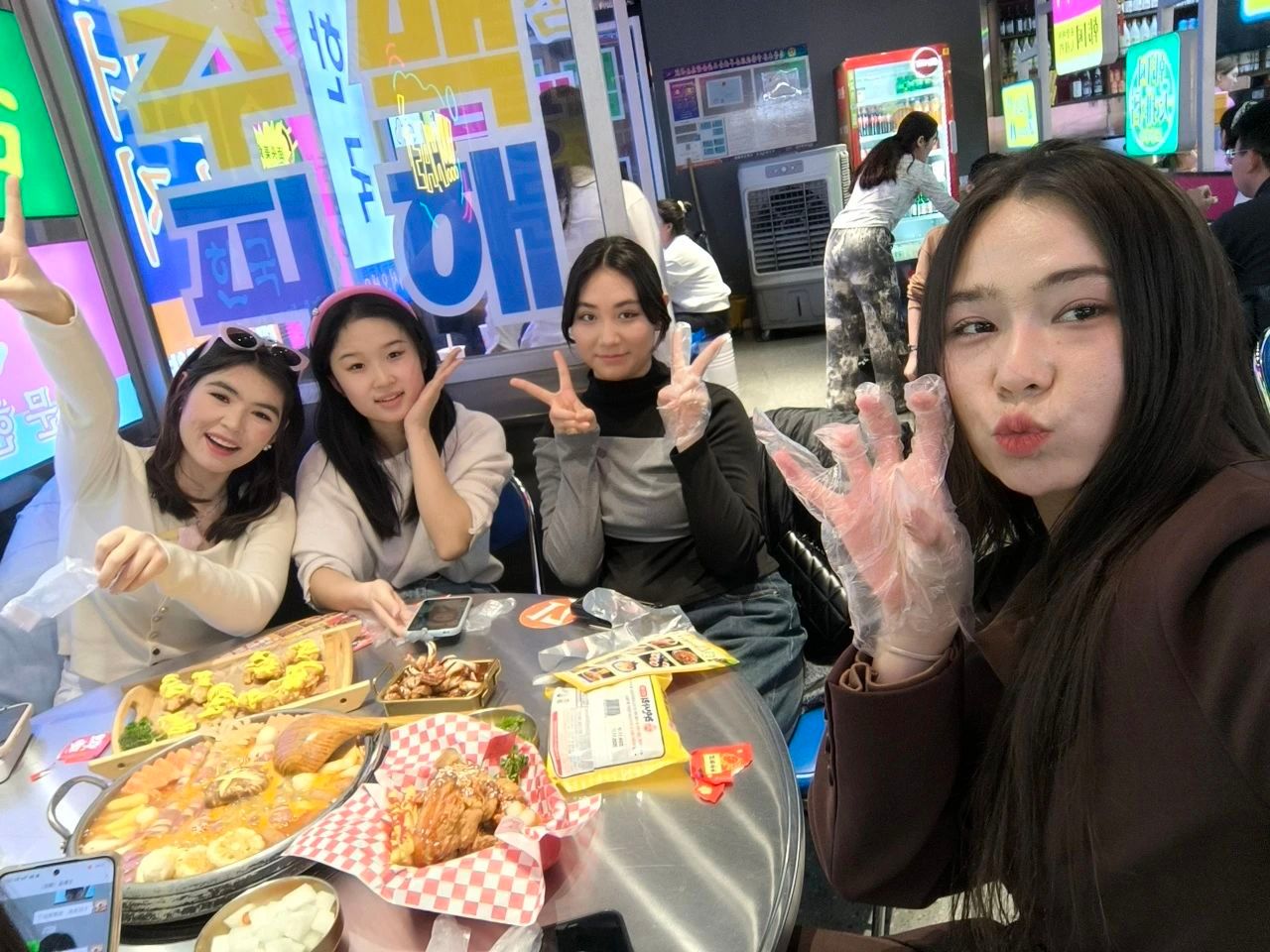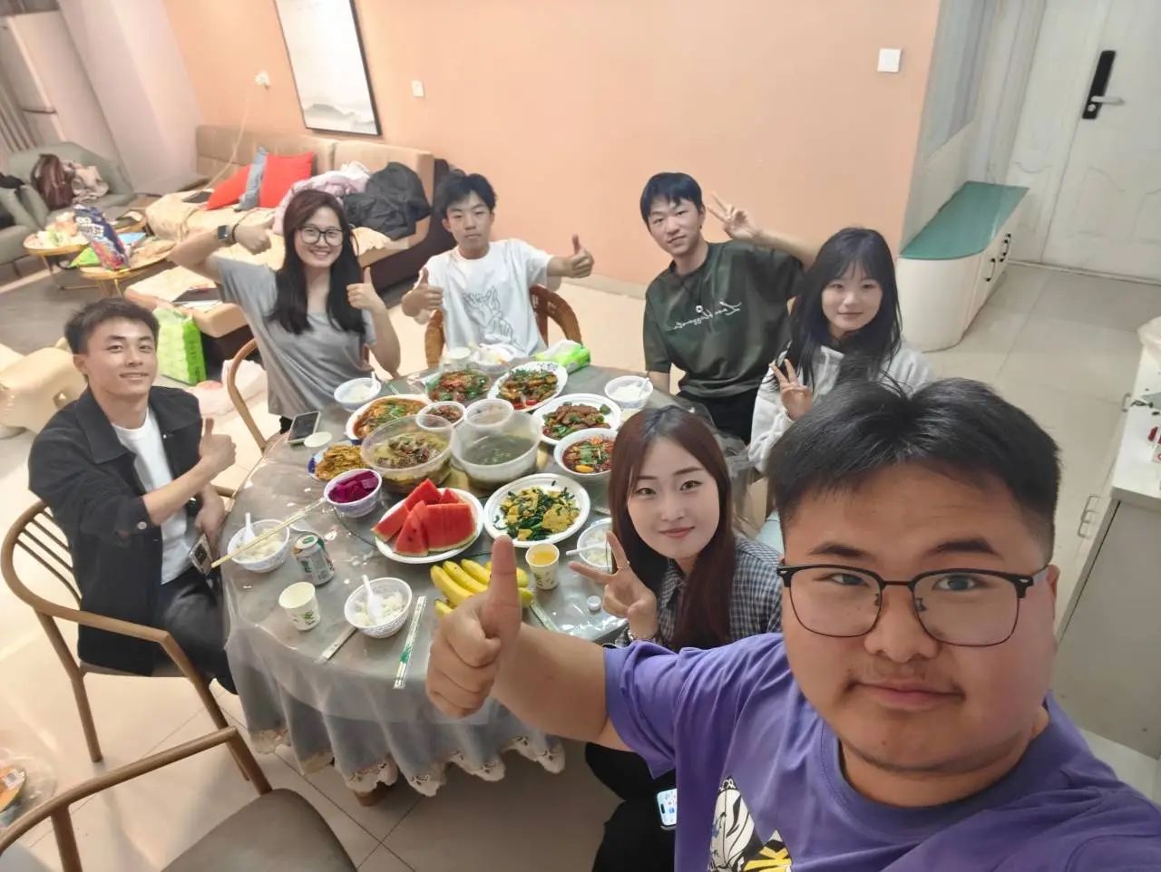 美味佳肴桌上摆,墙上装饰独具巧思,24-3班的排日代姆·吐尔孙和他的朋友们笑容灿烂,自在又放松,一同享受这甜美的双节美好时光。