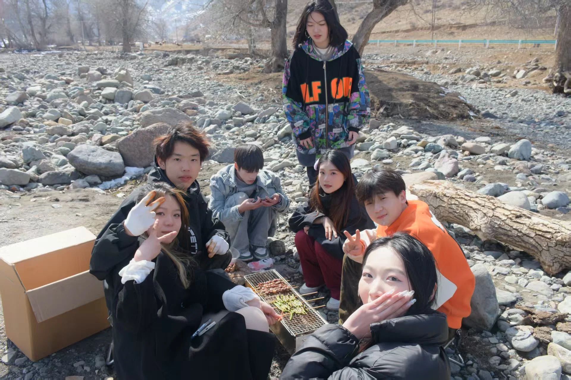 24级的同学们于石滩处踏青烧烤,美食诱人,笑语朗朗,在自然中共享欢乐,定格美好时光,情谊愈浓。