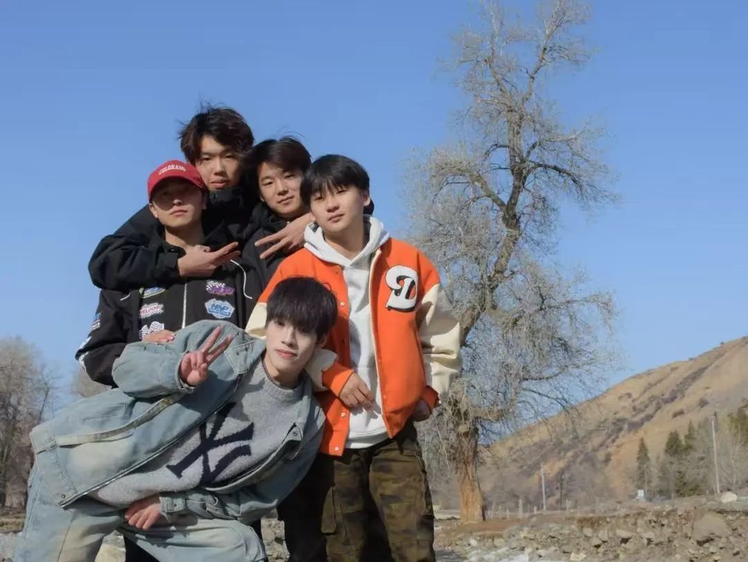 舞蹈学24 - 7班的几位同学春日同游,蓝天之下,河畔石间,他们笑容灿烂,青春活力在自然中尽情绽放。